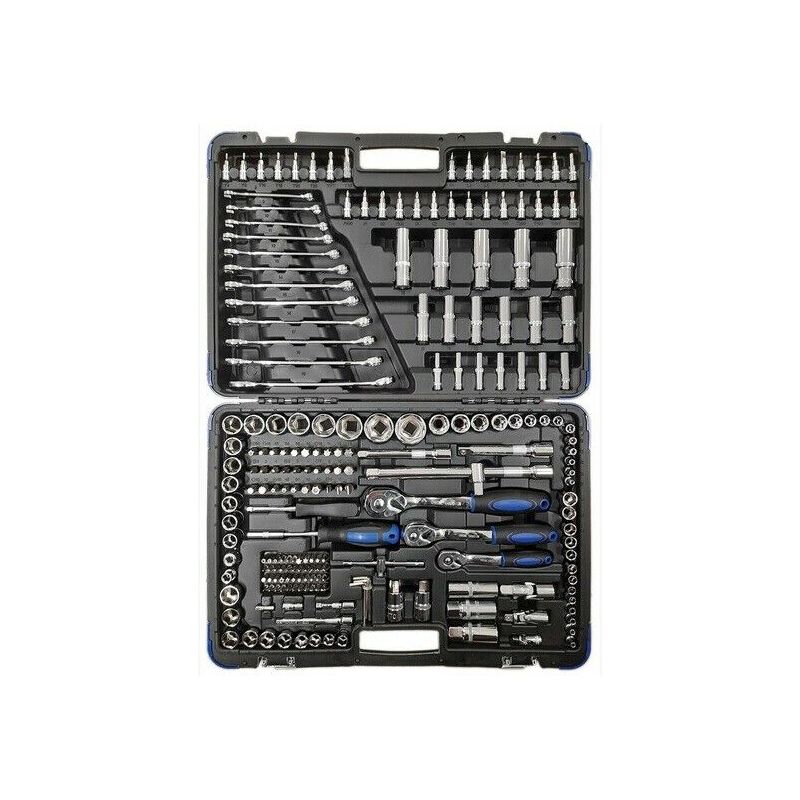 CASSETTA PROFESSIONALE 216 PEZZI FERMEC '42840' Set composto da 216 pezzi di chiavi a bussola esagonali e torx con attacco 1/4 - 3/8 - 1/2, cricchetti e chiavi comvinate 8-19 mm. Fornite in pratica valigetta con chiusure in metallo. Prodotto adatto per USO PROFESSIONALE. Caratteristiche Finitura cromata lucida Cassetta con ganci in metallo Misure esterne: 495 X 360 X 105 mm Peso: 11 kg Il set è composto da: comprende i seguenti utensili con attacco 1/2: cricchetto reversibile, 2 x prolunghe: 125,250 mm quadro scorrevole per prolunghe con riduzione da 3/8 a 1/2 snodo, 2 x bussole per candele: 16, 21 mm 14 x bussole Esagonali: 13-14-15-16-17-18-19-20-21-22-24-27-30-32 mm 5 x bussole Esagonali lunghe: 16-17-19-21-22 mm 3 x bussole Torx femmina: E20 - E22 - E24, bussola Torx maschio Tx-70 bussola Esagono maschio 14 mm comprende i seguenti utensili con attacco 3/8: cricchetto reversibile, prolunga 125 mm, snodo bussola per candele 18 mm, 10 x bussole Esagonali