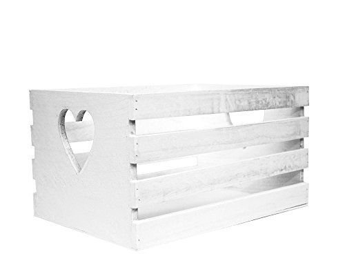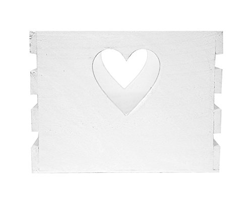 Fair Cassetta Frutta Legno Bianco con Cuore Porta Oggetti Porta Pane a Doghe 27 x 20 cm Decoupage