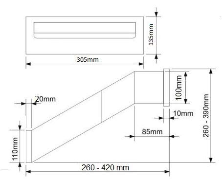 Larghezza = 305 [mm] Altezza = 135 [mm] / Spessore del muro variabile da 260 - 420 [mm]
