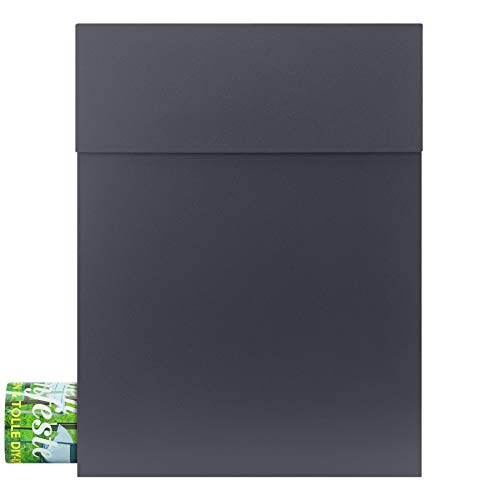 Qualità esclusiva di produzione tedesca: la cassetta delle lettere di design di alta qualità con scomparto per giornali è realizzata in lamiera di acciaio zincato e ha una verniciatura a polvere in grigio antracite (RAL 7016, opaco, struttura fine), che la rende particolarmente robusta, antiruggine e facile da pulire.
