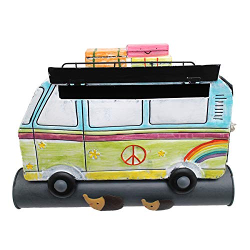 Cassetta delle lettere e della posta in metallo dipinto, con contenitore a tubo per i giornali, formato A4 (modello: Hippie Bus bunt)