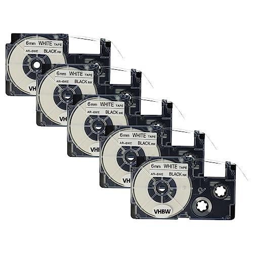 Vhbw 5x cassetta nastro compatibile con Casio KL-7200, KL-60, KL-70E, KL-300, KL-7000, KL-7400, KL-200E etichettatrice 6mm nero su bianco