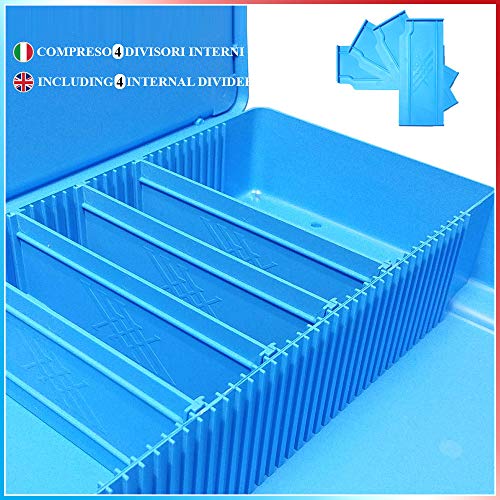 Include 4 divisori interni per organizzare al m ximo l'attrezzatura: la scatola dispone di 4 divisori interni e grazie al sistema interno Multi righello in cm. Si può dividere l'interno con la precisione di un cm