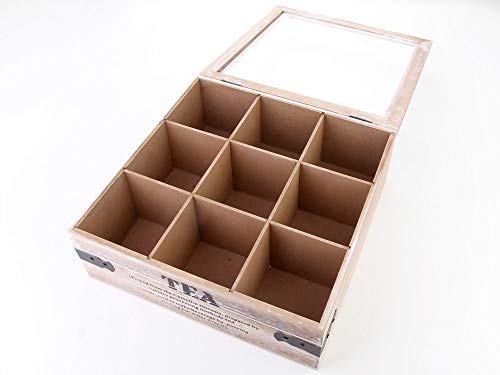 Cassetta porta-bustine di tè, in legno, con 9 scomparti e coperchio in vetro