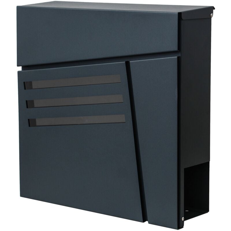 Cassetta postale portalettere a parete modello HHG-199 acciaio zincato 12x37x37cm colore ANTRACITE Le cassette postali non dovrebbero servire solo al loro scopo, ma essere anche un'aggiunta decorativa alla tua area esterna. Con questo modello ottieni entrambi: una cassetta portalettere funzionale e moderna. Questa cassetta è realizzata in acciaio zincato e ha un vano a portata di mano per i giornali, in modo che i vengano conservati al riparo fino a quando non verranno portati in casa. Il design moderno è sottolineato dalla presenza di 3 finestrelle poste sulla parte frontale, tramite le quali potrete verificare il contenuto. Questo modello offre un'elevata capacità, ideale in caso di assenze prolungate. La cassetta postale a muro può essere montata rapidamente e facilmente. Il materiale di montaggio è incluso così le chiavi della serratura. 2 chiavi e materiale per il montaggio inclusi nella consegna con vano ideale per i giornali con 3 piccole finestre posizionate sulla parte