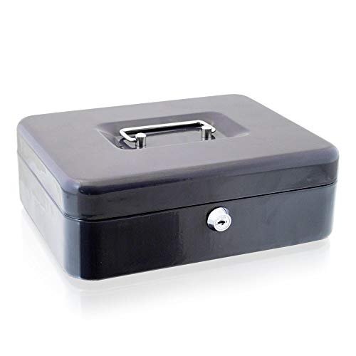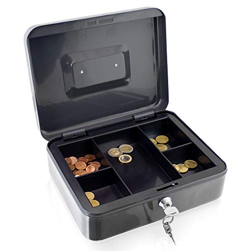 Cassetta portavalori 25 cm, vassoio contamonete richiudibile, cassaforte grigio scuro