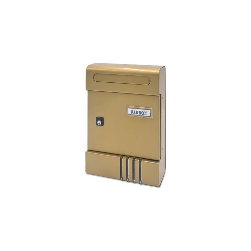 Cassetta posta se alubox Alluminio verniciato bronzo mm 200x70 h.mm 290 in alluminio anodizzato e verniciato. adatta per interno e esterno. con apertura frontale, serratura a cilindro con doppia chiave. con portanome in plastica trasparente. corpo preforato sui lati per l'unione di più casellari.