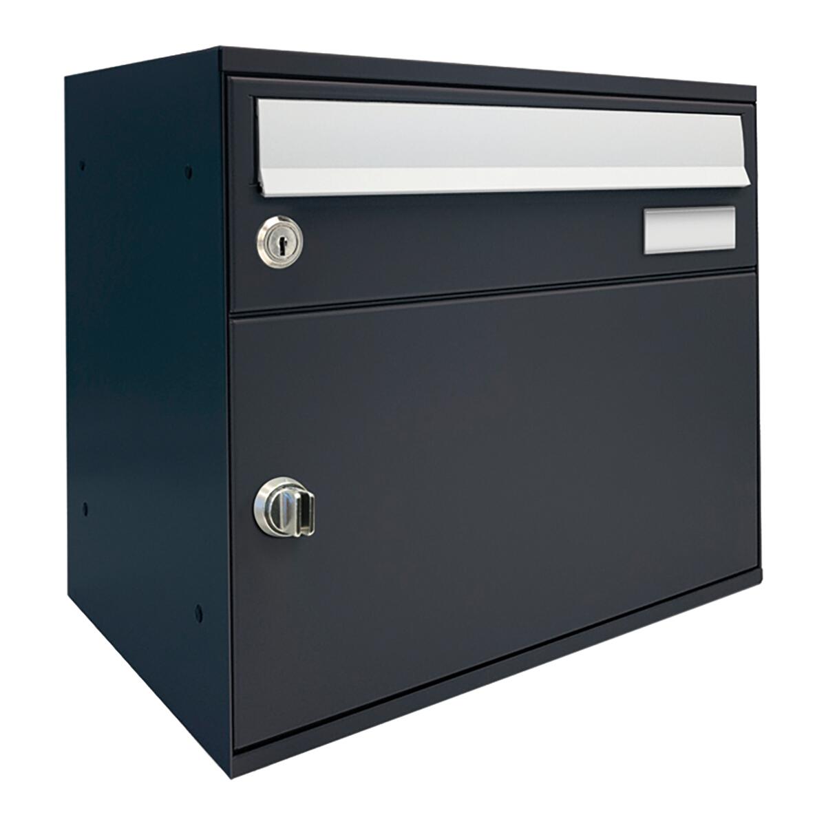 Cassetta Postale da rivista per esterni con vano portapacchi, componibile per realizzare anche casellari condominiali. Costruita in lamiera zincata verniciata alle polveri in Ral 7016 grigio antracite . Lo sportello è dotato di anti-prelievo con flap e portanome (che si può incidere) in profilato di alluminio anodizzato argento. Adatto per l'esterno, resistente alle intemperie. Ideale per installazioni singole oppure condominiali perché componibile. Lo sportello è dotato di anti-prelievo con flap e portanome (che si può incidere) in profilato di alluminio anodizzato argento, puoi ricevere i tuoi pacchi anche se non sei a casa. Grazie alla predisposizione questo prodotto può essere montato anche su piantana. Il vano portapacchi e la cassetta postale incorporata si aprono con la stessa chiave