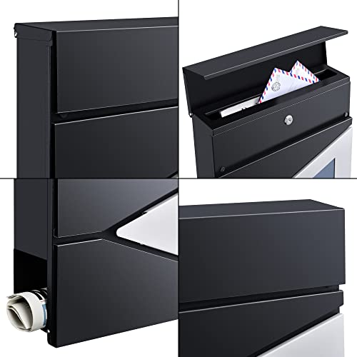 Cassetta Postale a Muro (AxLaxP) 37 x 37 x 10,5 cm Scomparti Coperti per Lettere e Giornali - Finestrina di Visualizzazione - Acciaio Inox - Antracite/Argento