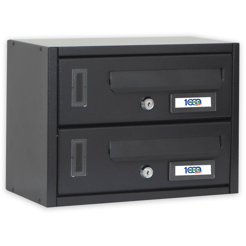 CARATTERISTICHE CASSETTA POSTALE CONDOMINIALE 2 POSTI CM 30X17X22H - MODELLO MODULAR - La cassetta postale condominiale Modular a 2 posti è ideale per l'utilizzo in contesti condominiali o in aziende dove la posta deve essere facilmente accessibile a più utenti. La finitura antracite conferisce alla cassetta un aspetto moderno ed elegante. Le dimensioni di circa 30 cm in larghezza, 17 cm in profondità e 22 cm in altezza e lo spessore in lamiera di 6 mm, la rendono abbastanza spaziosa da poter contenere grandi buste o pacchi. Le due coppie di chiavi numerate univoche e le targhette porta nome rendono la cassetta sicura e permettono di identificare facilmente la posta destinata ad ogni utente. La finestrella d'ispezione consente di controllare rapidamente se c'è posta all'interno della cassetta, senza dover aprire il sistema a basculante. Quest'ultimo sistema, inoltre, protegge la posta dalle piogge e da altri agenti atmosferici. La cassetta postale è costruita con materiali resistenti
