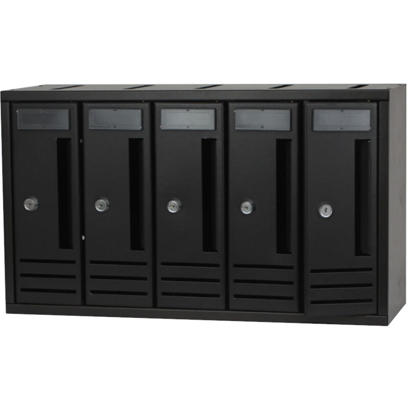 CARATTERISTICHE CASSETTA POSTALE CONDOMINIALE CINQUE ANTE CM 52X18X30H . MODELLO DUMAS - La cassetta della posta è un elemento fondamentale in ogni abitazione, soprattutto nei condomini. Il modello Dumas, prodotto dall'azienda Mille S.r.l. in Italia, è una soluzione ideale per rispondere alle esigenze di un condominio con cinque utenze. Questo set di cinque cassette verticali in un unico blocco modulare è realizzato in acciaio di spessore 6 mm, verniciato in un elegante colore antracite. La cassetta condominiale è dotata di targhette porta-nome, feritoie di ispezione e due chiavi numerate per ogni anta, per garantire sicurezza e privacy ai condomini. Le dimensioni della cassetta sono di 52 cm in larghezza, 18 cm in profondità e 30 cm in altezza, e il fissaggio a muro è molto semplice grazie alla predisposizione presente sulla cassetta stessa. Inoltre, sono inclusi nel kit di fornitura anche i gommini per gli inserti sopraelencati, per garantire una tenuta perfetta tra le cassette e