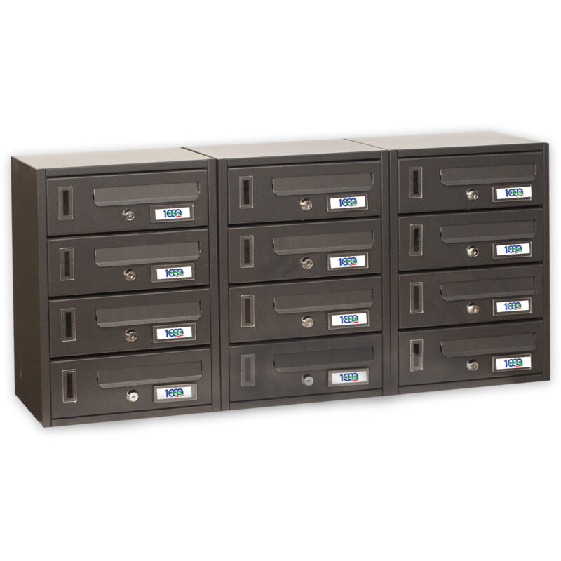 CARATTERISTICHE CASSETTA POSTALE CONDOMINIALE 12 POSTI CM 90X17X42H - MODELLO MODULAR La sofisticata cassetta condominiale, dall'elegante finitura nero antracite, incarna il perfetto equilibrio tra funzionalità e stile contemporaneo. La sua struttura modulare, composta da tre moduli da 4, si presenta come un'espressione di design raffinato, consentendo una disposizione flessibile e armoniosa nel contesto condominiale. La cassetta condominiale da 12 posti modulare, con dimensioni di 90x17x42h, è accompagnata da un set di 12 coppie di chiavi numerate (una coppia per singola cassetta), esemplificando un livello superiore di sicurezza e accessibilità personalizzata per ogni inquilino. Il colore nero antracite aggiunge una nota di sobria eleganza, perfettamente adattandosi all'ambiente circostante. L'inclusione dei kit targhette porta-nome conferisce un tocco distintivo e altamente funzionale a ogni cassetta condominiale. La sezione interna della cassetta è attentamente progettata per