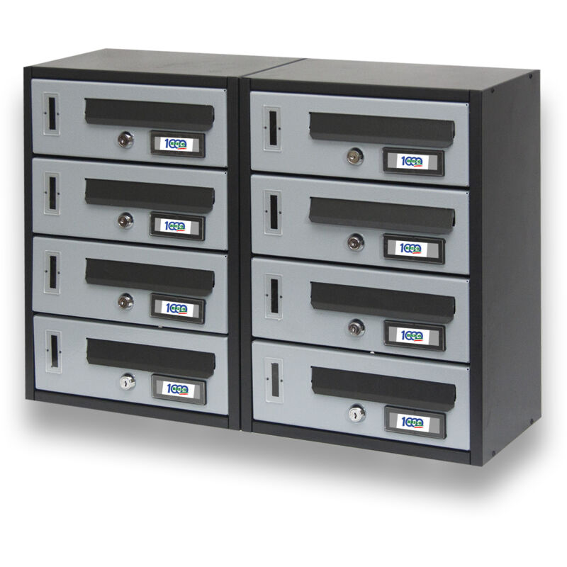 CARATTERISTICHE CASSETTA POSTALE CONDOMINIALE 8 POSTI CM 60X17X42 H - Modello Modular - La cassetta postale condominiale Modular a 8 posti Grigio moderno è la soluzione ideale per la corrispondenza del vostro condominio. Con le sue dimensioni di 60 cm di larghezza, 17 cm di profondità e 42 cm di altezza, questa cassetta postale offre una grande capacità di archiviazione per la posta degli abitanti del condominio. La finitura Grigio Moderno dona alla cassetta un aspetto moderno ed elegante, che si adatta perfettamente a qualsiasi tipo di edificio. La cassetta postale dispone di 8 coppie di chiavi univoche, numerate per garantire la sicurezza della posta degli inquilini. L'inclusione dei due kit (Targhette portanome e Portachiavi in omaggio) conferisce un tocco distintivo e altamente funzionale a ogni cassetta condominiale. Le finestrelle d'ispezione consentono di verificare facilmente se la posta è stata consegnata, senza dover aprire la cassetta. La cassetta postale condominiale