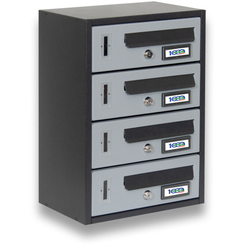 CARATTERISTICHE CASSETTA POSTALE CONDOMINIALE 4 POSTI GRIGIO CM 30X17X42 H - Modello Modular - Con una finitura in colore Grigcio moderno, la cassetta ha una dimensione di circa 30 cm in larghezza, 17 cm in profondità e 42 cm in altezza e uno spessore in lamiera di 6 mm.La cassetta postale dispone di quattro coppie di chiavi numerate univoche, targhette porta nome, portachiavi, finestrelle d'ispezione e un sistema a basculante per proteggere la vostra posta dalle piogge.La cassetta postale condominiale Modular a 4 posti è in grado di soddisfare le esigenze di grandi condomini e può essere assemblata con altre cassette e buche lettere a più posti, in modo da creare un sistema di gestione della posta ad hoc per ogni condominio. In questo modo, è possibile garantire una maggiore sicurezza per la corrispondenza degli abitanti del condominio e una migliore organizzazione nella gestione della posta. INFO PRODOTTO: Marca: 1000BRICO Modello: Modular Paese di fabbricazione: Italia SPECIFICHE