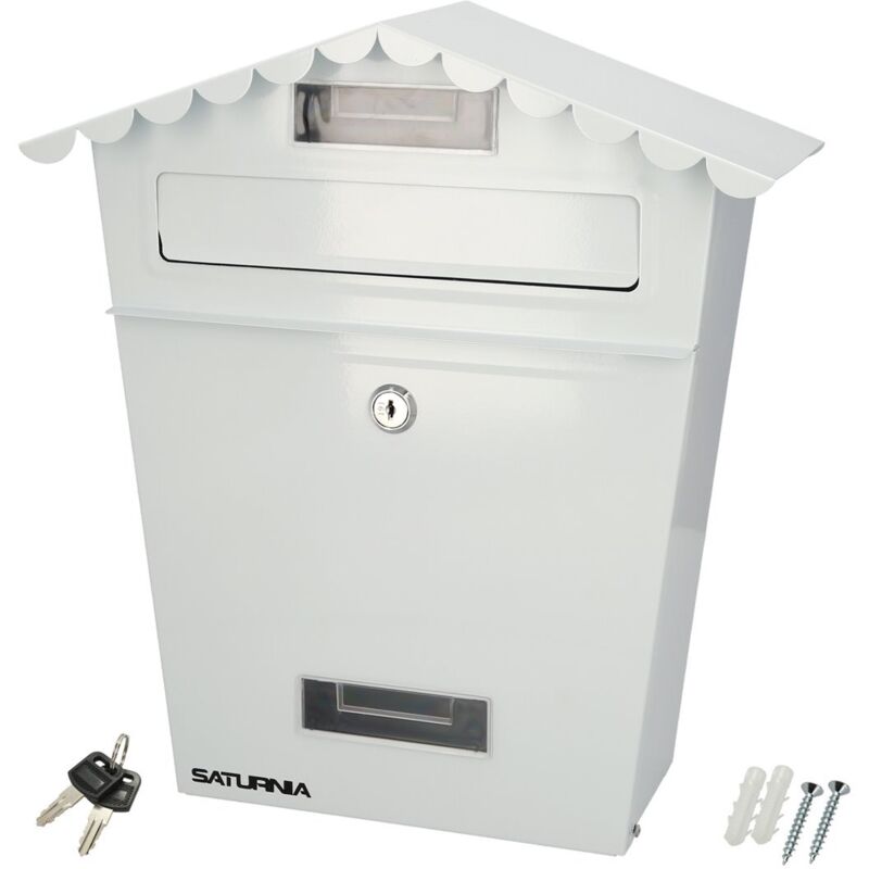 Cassetta postale per esterni bianca House 330 x 125 x 365 (H) mm. Caratteristiche aggiuntive: Misure (larghezza x altezza x profondità): 125 x 330 x 65 mm. Realizzato in metallo. Colore bianco. Con serratura e set di chiavi. Con visiera trasparente.