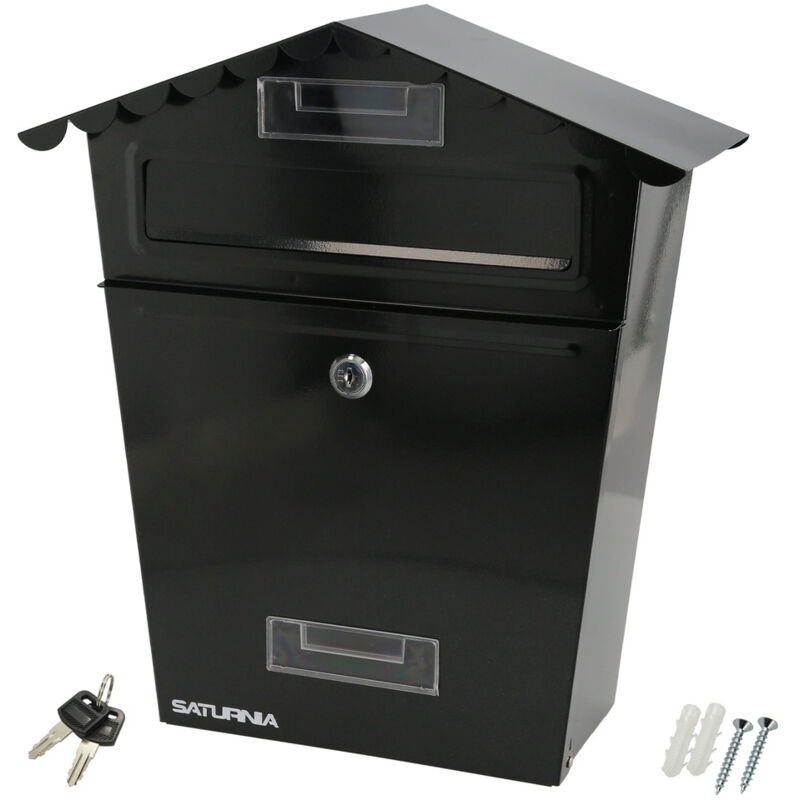 Cassetta postale House Black da esterno 330 x 125 x 365 (H) mm. Caratteristiche aggiuntive: Misure (larghezza x altezza x profondità): 125 x 330 x 65 mm. Realizzato in metallo. Colore nero. Con serratura e set di chiavi. Con visiera trasparente.