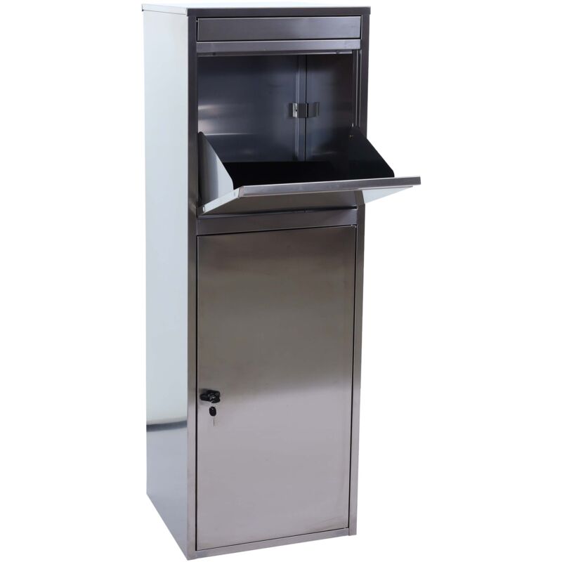 Cassetta postale per lettere e pacchi parcel box modello HHG-332 XL acciaio verniciato a polvere 140x46x45cm colore GRIGIO Scopri la soluzione definitiva per la ricezione dei pacchi! Questa versatile cassetta unisce sicurezza, qualità e funzionalità per ricevere i pacchi in modo sicuro e pratico. La nostra cassetta per pacchi è stata dotata di un sistema di deposito sicuro che protegge i vostri pacchi da accessi indesiderati, Il sistema prevede l'apertura dello sportello per inserire il pacco, non appena lo sportello viene chiuso, il pacco cade nella parte inferiore della cassetta, dove il pacco non può essere preso senza prima dover aprire lo sportello con serratura. Nella parte inferiore della cassetta è presente un tappetino che ammortizza la caduta del pacco e lo protegge da eventuali danni. La cassetta è ideale anche per l'uso commerciale, ed è perfetta per mantenere le tue consegne al sicuro. Questa cassetta postale è adatta alla ricezione di lettere e di pacchi di piccole e