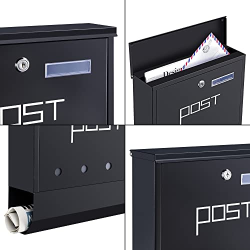 Cassetta Postale a Muro, Scomparti Coperti per Lettere e Giornali - Finestrine di Visualizzazione e SpazioTarghetta - Acciaio Inox - Antracite