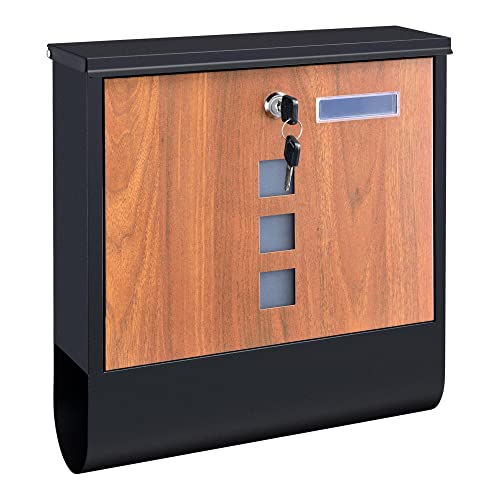 Cassetta Postale a Muro, Scomparti Coperti per Lettere e Giornali - Finestrine di Visualizzazione e Targhetta - Acciaio Inox - Antracite/Effetto Legno
