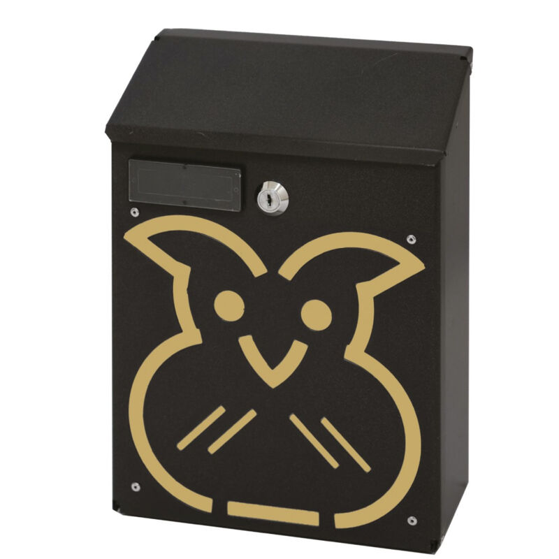 CARATTERISTICHE CASSETTA POSTALE STILIZZATA GUFO CM 21X8X30H MODELLO GRIMM La cassetta postale stilizzata a forma di gufo è un'opzione elegante e funzionale per la vostra casa. Realizzata in acciaio spesso 6mm e verniciato di colore antracite, garantisce la massima durata e resistenza alle intemperie. Il design stilizzato a forma di gufo aggiunge un tocco di personalità alla vostra casa, mentre la finestrella portanome permette di identificare facilmente la vostra posta. Il tetto mobile protegge la posta dalla pioggia e dalla neve, mentre i due chiavi garantiscono la massima sicurezza per le vostre corrispondenze. Inoltre, la cassetta postale è dotata di predisposizione per il fissaggio a muro, il che la rende facile da installare e resistente al vento e alle intemperie. Le misure della cassetta sono cm 21 x 8 x 30h, il che la rende una scelta ideale per le case di piccole e medie dimensioni. SPECIFICHE TECNICHE: Cassetta postale per uso residenziale in acciaio da 6mm verniciato