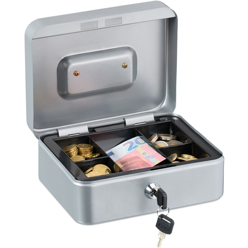 Se hai bisogno di teneredenaro al sicuro, questa cassetta di sicurezza è la scelta giusta. Lacassettina portatile è adatta per l'uso a casa così come ai mercatini, allefiere annuali e ad altri eventi. L'inserto rimovibile con 5 scomparti consente di ordinare i contanti in base al valore, in modo da avere sempre una visione d'insieme. Nello scomparto sottostante c'è spazio per banconote e ricevute. La valigetta può essere chiuso in modo sicuro e trasportato facilmente grazie alla maniglia di trasporto. Cassetta porta soldi in dettaglio - Dimensioni H x L x P: 8,5 x 20 x 17 cm ca. - Peso: 0,8 kg ca. - Materiale: ferro, plastica, acciaio - In diversi colori Valigetta salvadanaio con serratura - Ideale per contanti, monete e scontrini - Chiusura con serratura per tenere il denaro al sicuro - Inserto rimovibile per una suddivisione ottimale delle banconote - Facile da trasportare grazie alla maniglia di trasporto retrattile - In ferro resistente con verniciatura a polvere - Per uso