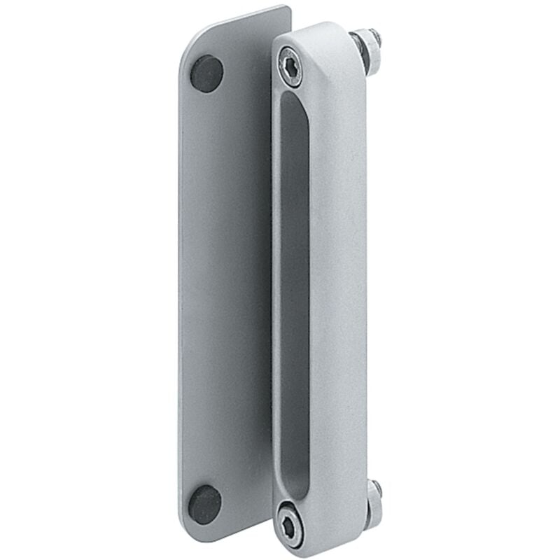 Utilizzabile a sinistra ea destra · Per il profilo del tubo 30-60 mm regolabile · Alloggiamento in metallo leggero · Stop in acciaio inossidabile · Avvitare · Accessori: · 2 Viti cilindri · 2 Dadi speciali < BR> · 2 Arresti in gomma