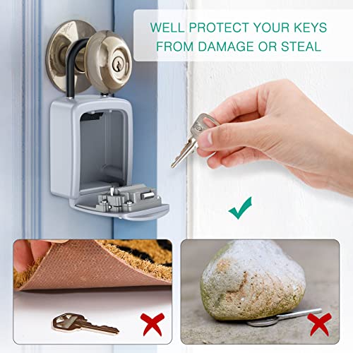 Installazione del Gancio & Installazione a Parete - Con un grillo rimovibile, puoi appenderlo temporaneamente esattamente ovunque, come pomello, tubo, ringhiera e altro ancora. Inoltre potrebbe montarlo a parete con 4 viti. Non c'è bisogno di nascondere le chiavi sotto il tappeto, il vaso di fiori o il tappetino, ecc.