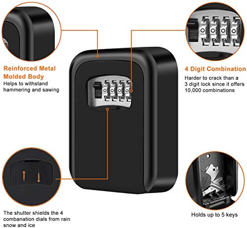Ampia capacità: Sicurezza Chiavi con Combinazione è dotata di un ampio spazio interno che può contenere fino a 6 chiavi. Dimensioni: 12.5*9.5*4CM.