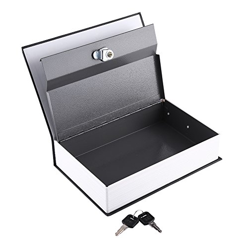Cassetta di sicurezza per libri segreti, cassetta di sicurezza, con 2 chiavi, colore nero, per camera da letto (180 x 115 x 55 mm piccola chiave nera)