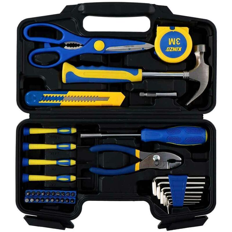 Cassetta Attrezzi Cassetta Valigetta Attrezzi Porta Utensili da Lavoro Completa 39 pz Blu Kinzo Pratico, se si ha sempre un set di strumenti di base in casa. Questo set Kinzo è progettato appositamente per l'uso domestico e contiene tutto ciò di cui hai bisogno per i lavori più diffusi in casa. Avvitare un po' a portata di mano, misurare un chiodo nella parete per una passata. Con questo set completo non farai mai nulla. Avrai sempre tutto a portata di mano. Robusta valigetta in plastica. I 39 attrezzi sono confezionati ordinatamente in una robusta valigetta di plastica, molto compatta e facile da riporre, ad esempio in un armadietto. Gli strumenti sono realizzati in acciaio resistente e plastica di qualità che siete abituati dalla marca Kinzo. Il set è composto da: 1x Giravite con punta intercambiabile 20x Punte Giravite 1x Adattatore magnetico 1x Pinza 4 x Giravite per piccole lavorazioni 8x Chiavini esagonali 1x Martello 1x Metro da 3 mt 1x Taglierino 1x Forbici Caratteristiche