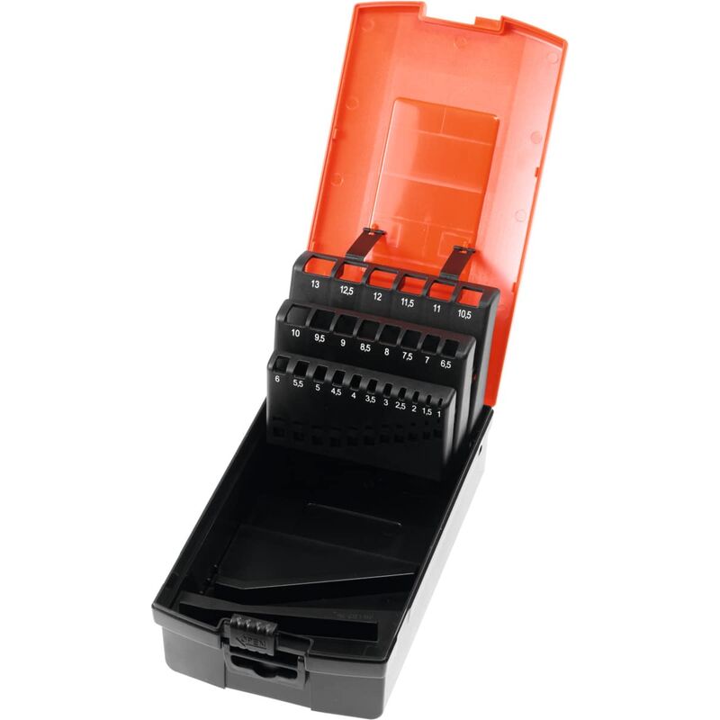 DescrizioneEsecuzione:Da corredare con gli assortimenti di ricambio, adatte per punte elicoidali DIN 338.Dati tecnici Per punte 1 mm - 13 mm Per punte a misure crescenti di 0,5 mm Tipo di prodotto Cassetta vuota Codice articolo 115475 1-13 EAN / GTIN 4045197924568