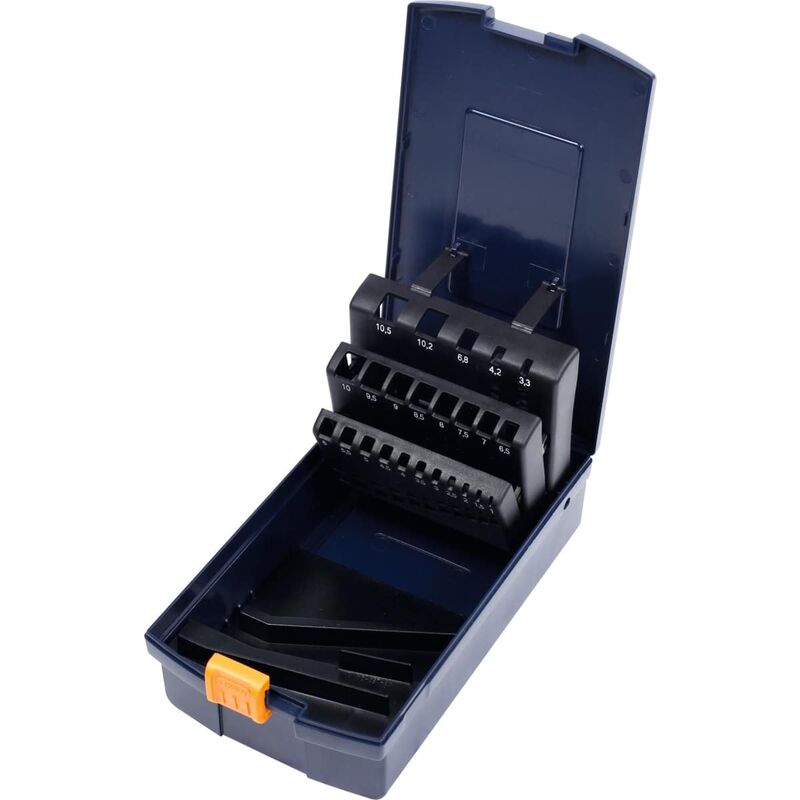 tuttavia, si consiglia di evitare il contatto. Nessuna protezione dall'acqua.Dati tecnici Per punte 1 mm - 10,5 mm Per punte a misure crescenti di 0,5 mm Tipo di prodotto Cassetta vuota Codice articolo 115470 1-10,5 EAN / GTIN 2050001112699