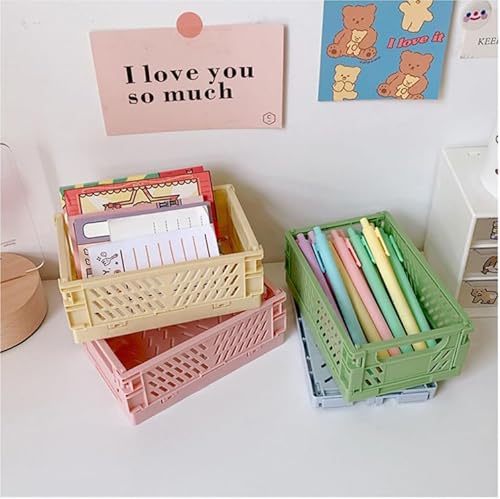 Set di 5 Mini Cassette Plastica Pieghevol, Mini Scatole Pieghevoli in Plastica, per Ufficio, Cucina, Camera da Letto, Bambini, Bagno e Studio (Multicolore, 1 Grande, 4 Piccolo)
