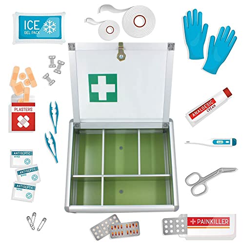 INCLUSO: Questa cassetta medica primo soccorso viene fornita priva di contenuto. Per maggiore flessibilità. Riceverai gratuitamente un paio di forbici di 14 cm resistenti.