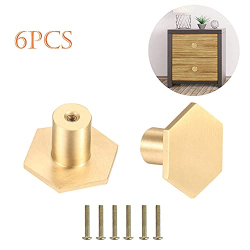 Cassetti Pomolo, 6 Pezzi Manopola In Ottone, Maniglia a Forma Di Esagonale, con Viti, per Casa e Ufficio, Mobili Da Cucina, Armadietti, Cassettiere, Comodini, Scarpiere (Dorato)