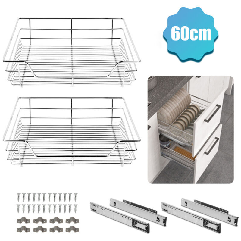 Il nostro versatile cassetto estraibile è un aiuto ideale per gli armadi della cucina. del bagno o della camera da letto. L'estensione funzionale del mobile rende più interessante la vita quotidiana. 【Alta qualità】L'inserto del cassetto è realizzato in ferro cromato e può sostenere fino a 20 kg. Il sistema di binari. compresi i binari estensibili e i cestini sospesi. rimane sempre sicuro e stabile. 【Multiuso】 Due metodi di installazione. adatti a varie ante di armadietti (armadietti a cassetti e ad ante). Le dimensioni esterne sono di 60 cm di larghezza. il che la rende molto compatibile. Il cassetto estraibile è il luogo di stoccaggio ideale per sfruttare al meglio lo spazio disponibile. Sono adatti per conservare stoviglie. spezie. frutta o verdura. ecc. 【Durevole e flessibile】Grazie alla guida di scorrimento. è facile da estrarre anche quando il cassetto è pieno. Grazie al binario flessibile e completamente esteso. può essere utilizzato ovunque. Risparmiare spazio】 Il cestino del