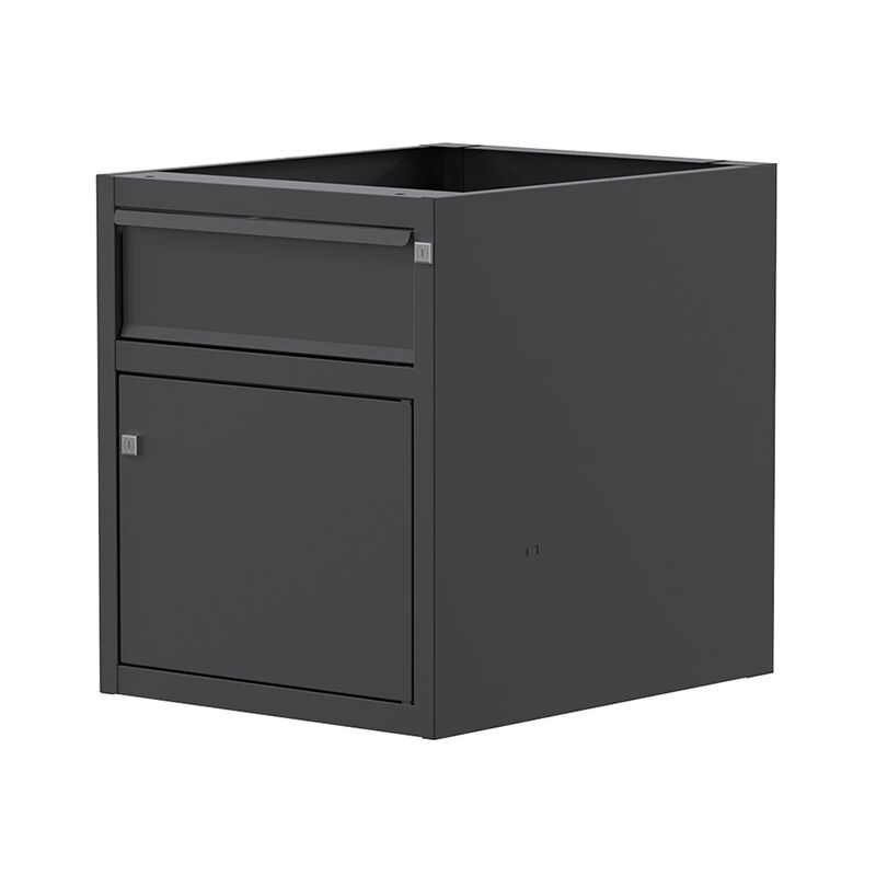 inferiormente, invece, è ricavato un vano con anta e pianetto interno rimovibile . Sia il cassetto che l'anta sono provvisti di pratiche chiusure con serratura a cilindro che consentiranno, se necessario, di custodirvi anche oggetti di valore. La cassettiera SOGI X3N_A-03 è compatibile esclusivamente con i banchi da lavoro della linea INDUSTRIA 2.0 . Il montaggio sul banco da lavoro avviene a mezzo bulloni. Caratteristiche tecniche della cassettiera con 1 cassetto ed 1 vano SOGI X3N_A-03 N° cassetti: 1 Dimensioni interne cassetto (L x P x H): 410 x 450 x 120 mm