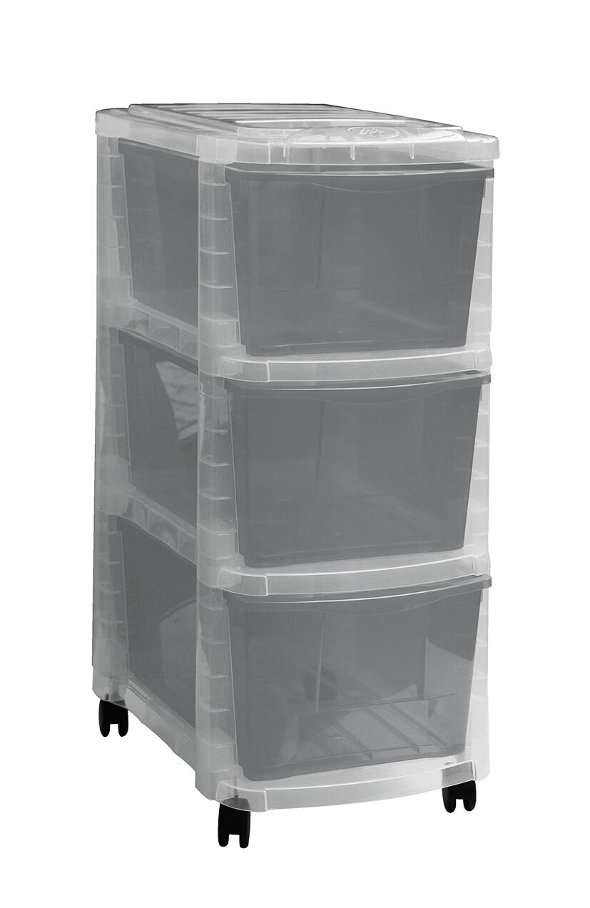 Cassettiera CLEAR COMMODE MEDIUM 3 FUME' - Cassettiera a 3 Cassetti+Ruote (MONTATA). adatta per tenere in ordine oggetti. Cassettiera Media con ruote a 3 cassetti colorati. cassetti colorati semi trasparenti