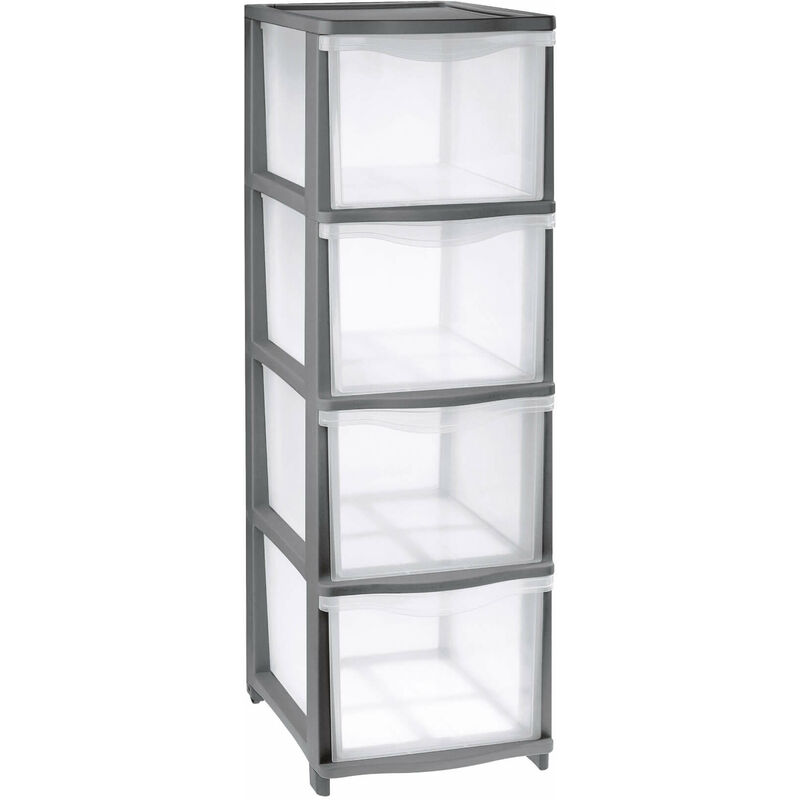 Cassettiera modulare Cover Line, con quattro cassetti alti trasparenti per una rapida verifica del contenuto. Capacità - misure 26,8 x 37 x h 82,7 cm