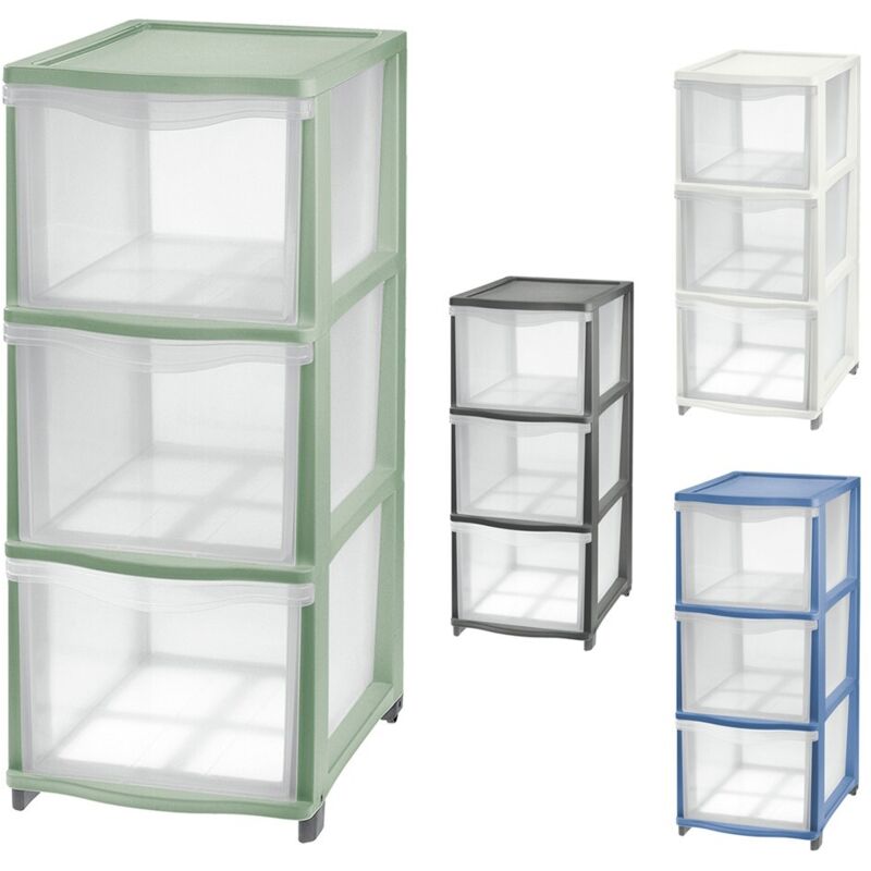 In plastica. A 3 cassetti alti. Dimensioni: cm. 26,8x37xh.63,1.