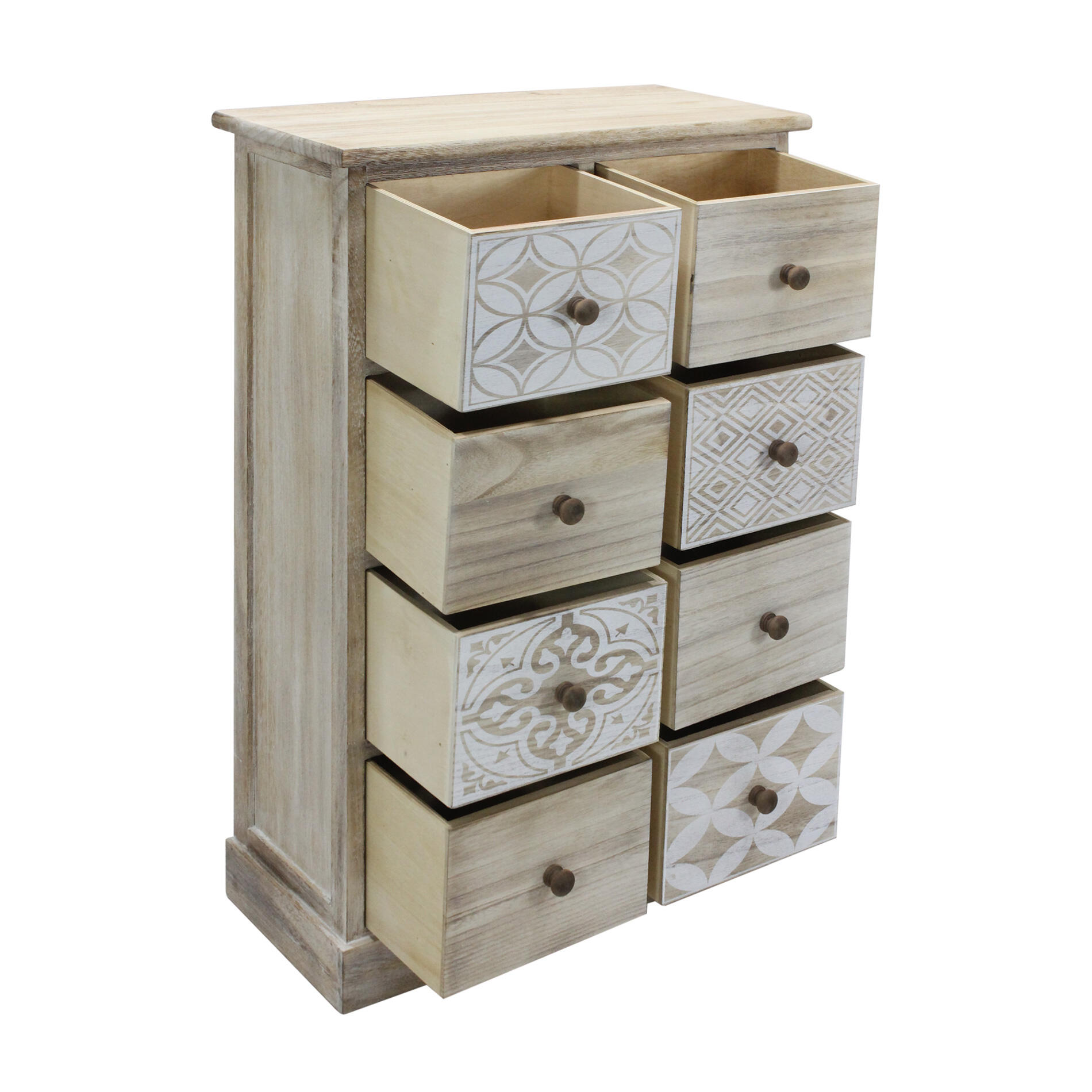 • La cassettiera è un mobile multiuso che puoi utilizzare in diversi modi e diversi ambienti. E' formata da 8 cassetti che ti permettono di riporre e tenere in ordine oggetti e minuterie. E' utile come cassettiera x bagno per riporre cosmetici, trucchi, pettini, fermacapelli. Adatta anche come mobile cassettiera da ingresso per tenere in ordine, guanti, chiavi e portafogli. E' perfetta come cassettiera shabby dallo stile sobrio ed elegante. Le tonalità del beige e del bianco rendono il comodino cassettiera un mobiletto versatile che si adatta sia ad un soggiorno moderno che ad una camera classica. Realizzata in legno di Paulownia ti arriverà già montata e pronta per l'uso. • Dimensioni: H 80,5 cm x L 53,5 cm x P 25 cm - Dimensioni cassetti: H 15,7 cm x L 22 cm x P 18,9 cm • Colore: Beige, Bianco • Montaggio: Il mobile arriverà già montato e pronto all'uso • Materiale: Legno di Paulownia. Adatto per bagno, camera da letto, soggiorno. Adatto per riporre piccoli oggetti. Già montato e pronto all'uso. Le sue forme contenute lo rendono perfetto per arredare anche stanze di piccole dimensioni