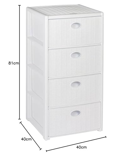 Cassettiera in plastica effetto rattan, con 4 cassetti, a rotelle, Dimensioni: 40 x 40 x 81 cm, bianco