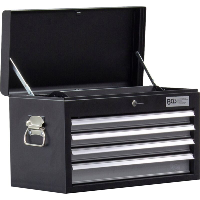 Adatto per cassettiera dei BGS 2001, 2004 Spessore parete corpo: 0,8 mm Spessore parete cassetti: 0,6 mm 3 cassetti piatti, 1 cassetto medio-alto 1 grande scaffale Coperchio chiudibili con 2 chiavi Maniglie di trasporto montate lateralmente Cassetti con cuscinetti a sfere, completamente estraibili Altezza 377 mm Larghezza del cassetto 560 mm Larghezza 307 mm Altezza del cassetto 3 x 48 | 1 x 74 mm Lunghezza (cavo) 660 mm Peso del tessuto 22.09 Numero di cassetti 4 Stück Profondità del cassetto 250,7 mm Dimensioni dell'imballaggio 1 Peso lordo 22090 g