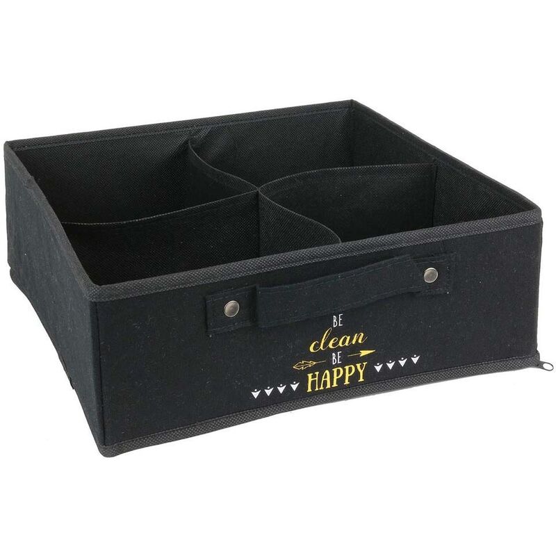 Aspetto Colore Nero Materiale principale Cotone Dimensioni Altezza (in cm) 11 Lunghezza (in cm) 28 Profondità (in cm) 28 Altre caratteristiche Capacità (in L) 8 Informazioni aggiuntive 4 scomparti Peso (in gr) 155 Cassetto a 4 scomparti Messaggio