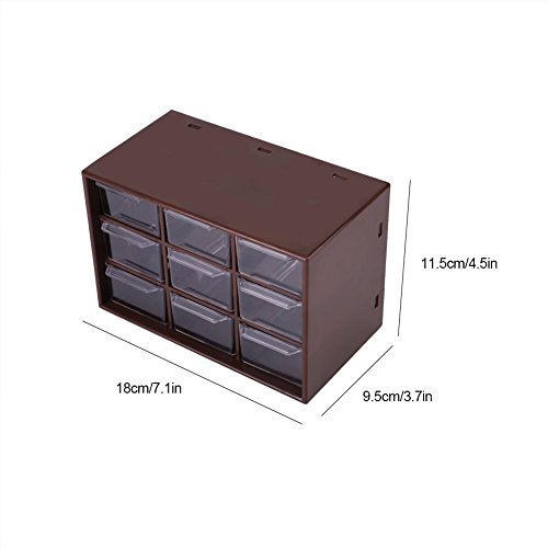 9 Cassettiera Scrivania da Tavolo in plastica Portatile 9 armadi reticolari Mini cassettiera Scatola cosmetica(Marrone)