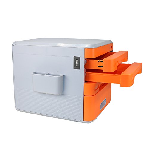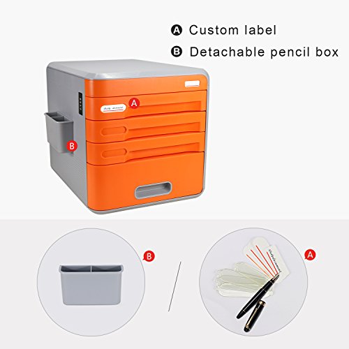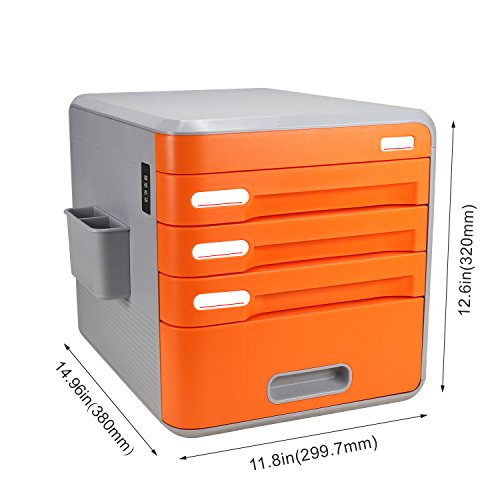 Cassettiere Ufficio con Serratura Di Codice, ABS Plastica, 4 Cassetti, 30x38*32cm, Per La Casa,Ufficio, Colore Arancia, EVERTOP