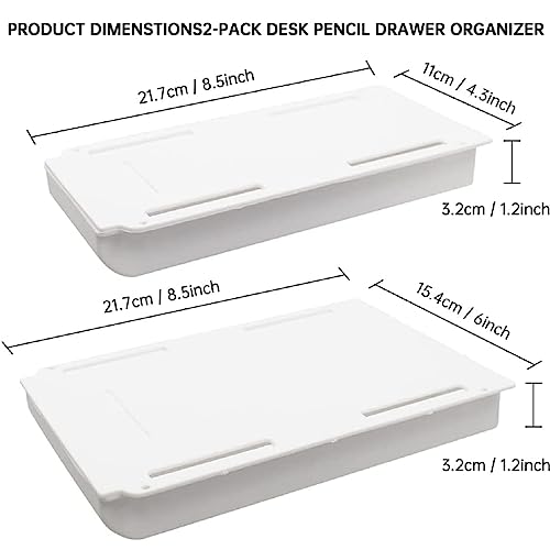 Set di cassetti nascosti in 2 pezzi, dimensione L: 22*15,5*3,3 cm, dimensione S: 22*11*3,3 cm, due dimensioni per soddisfare le diverse esigenze di stoccaggio, design di grande capacità, in grado di conservare molte piccole cose. Impermeabile e antipolvere per evitare che la polvere si accumuli nel contenitore.