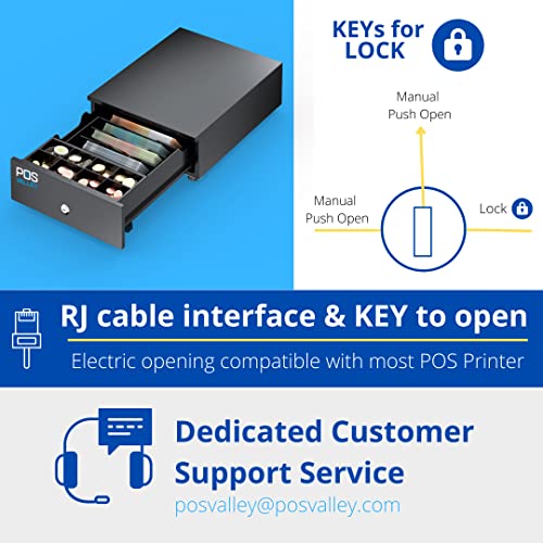 3 Modi per Aprire: il cassetto della cassa sotto il bancone si aprirà collegandosi alla stampante per ricevute. Inoltre, può essere aperto con una chiave o una leva di emergenza. Puoi aprire il cassetto in pochi secondi. Con 3 modi sicuri per aprire questo cassetto, sarai pronto per ogni situazione.