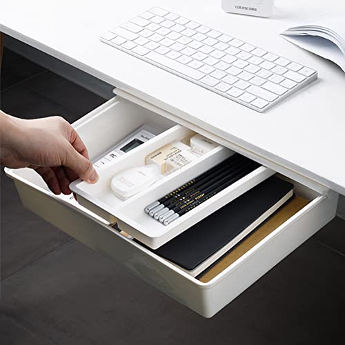 Cassetto sottopiano - Scrivania cassetto autoadesivo sotto scrivania, scatola portaoggetti autoadesiva organizer pop-up cassetto da scrivania nascosto per ufficio scuola (L)