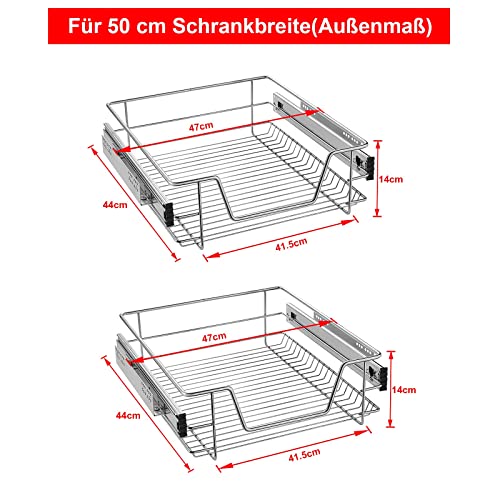 Larghezza armadio 50 cm. Dimensioni totali (con guide): circa 470 x 440 x 140 mm, adatto per armadi da 50 cm (dimensioni esterne), max. Portata: 20 kg, materiale: metallo cromato